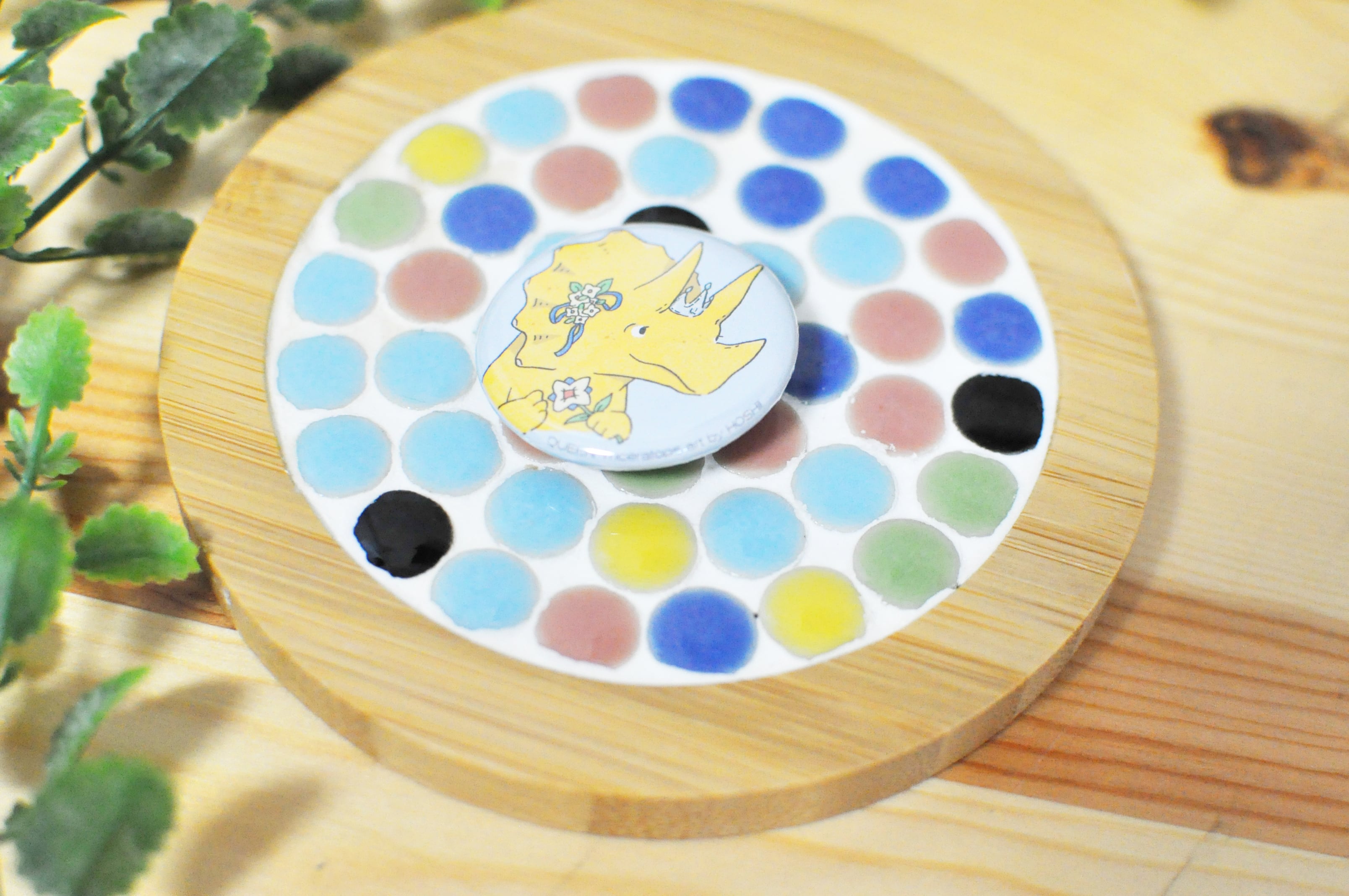 トランプのマークになりきっている恐竜3体の缶バッジセットです。